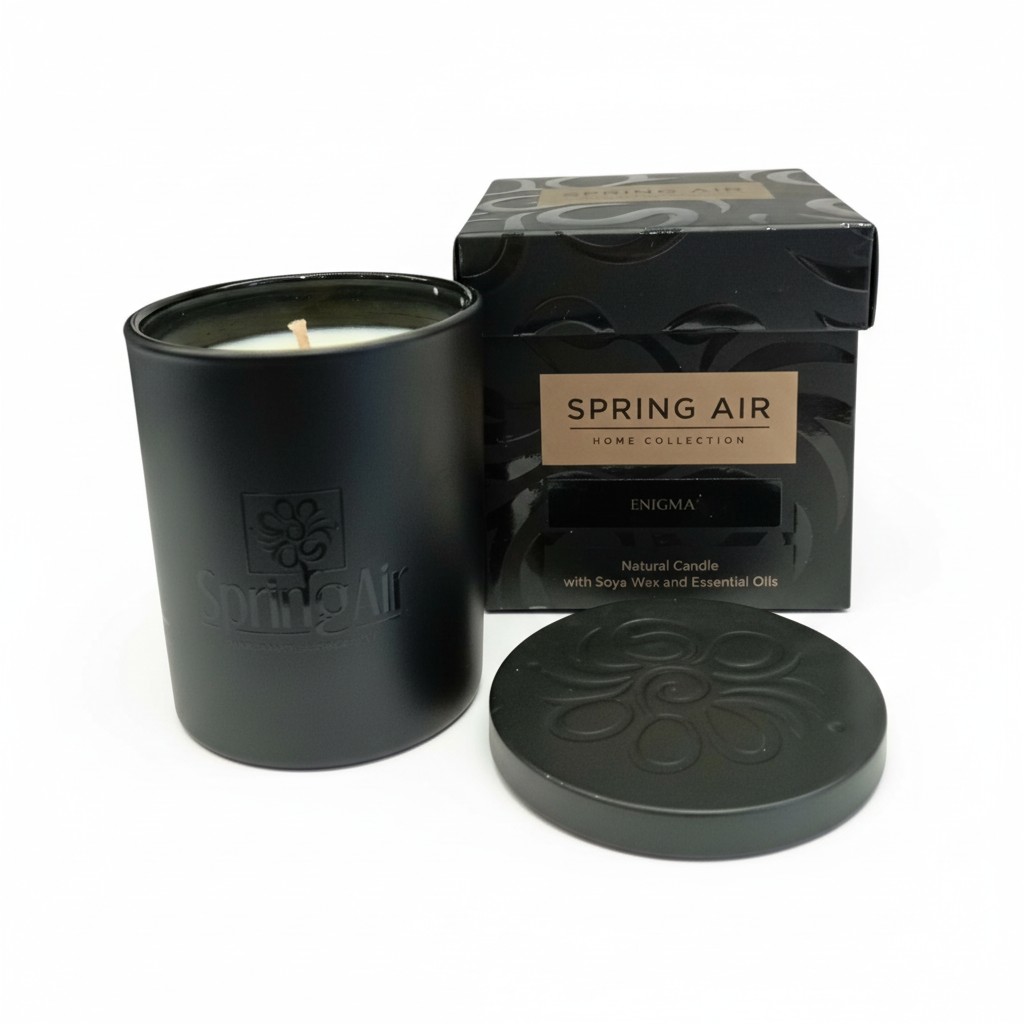 Načinjene od dragocijenih sastojaka i sa čistom funkcionalnošću, luksuzne soja svijeće mogu istinski poboljšati svačije raspoloženje ili bilo koji ambijent, pomoću svojih umirujućih i opuštajućih odlika. Spring Air®luksuzne soja svijeće su proizvedene od visoko kvalitetnog prirodnog sojinog voska u kombinaciji sa esencijalnim uljima, i nude neuporedivo iskustvo kroz izbor od 9 najprodavanijih mirisa u luksuznim posudama od 230ml. Trajanje 90 časova. Mirisna nota Enigma.