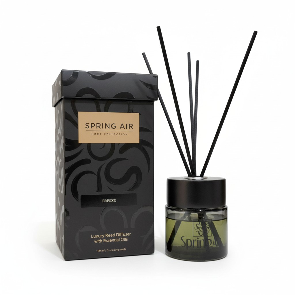 Kakav god ambijent da želite kreirati, možete samo uvrstiti jedan ovakav proizvod u Vaš prostor i zaista promijeniti raspoloženje i atmosferu. Pouzdani i prefinjeni, Spring Air®-ovi Luksuzni Štapići Ratana predstavljaju idealan estetski dodatak svakom domu, restoranu, kancelariji kao i bilo kom drugom prostoru. To je jedinstveno rješenje koje pogoduje svakom prostoru sa stilom i diskretnošću, pružajući delikatan, prefinjen i dugotrajni miris. Miris se širi pomoću štapića ratana umočenih u esencijalna ulja da bi apsorbovali miris, konstantno pozicionirani u razmaknutom položaju. Kvalitet i količina mirisa su fundamentalni. Mirisna nota Breeze.